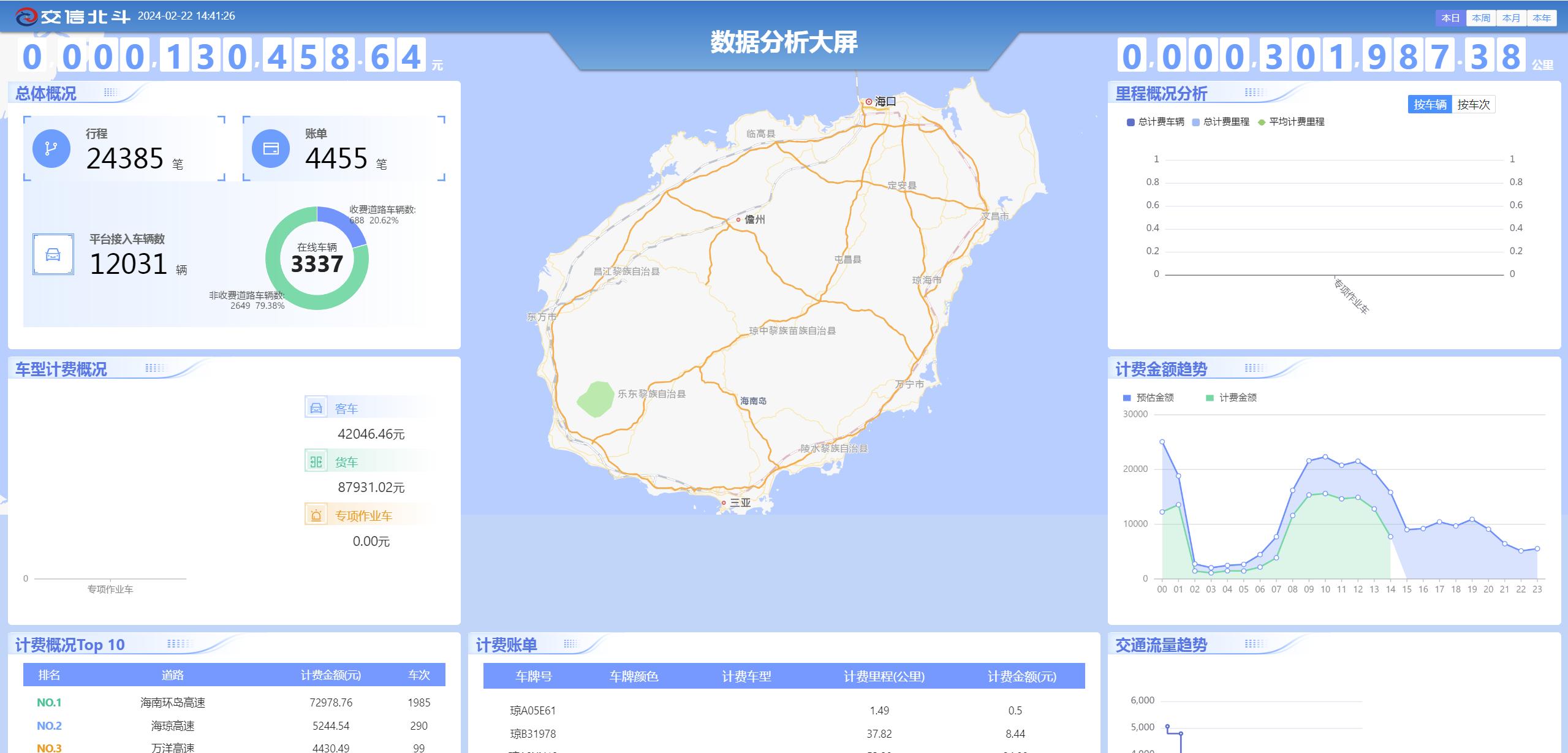 基于北斗自由流的收费体系建设,拥有北斗自由流收费完整的解决方案;满足自由流收费需求的北斗终端,集成北斗定位、通讯和ETC,自由流收费管理、稽核、清分结算等功能。